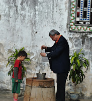 Here we encountered an elderly man who specialized in writing Chinese calligraphy on the concrete floor with a huge brush which he was able to write in reverse movement.